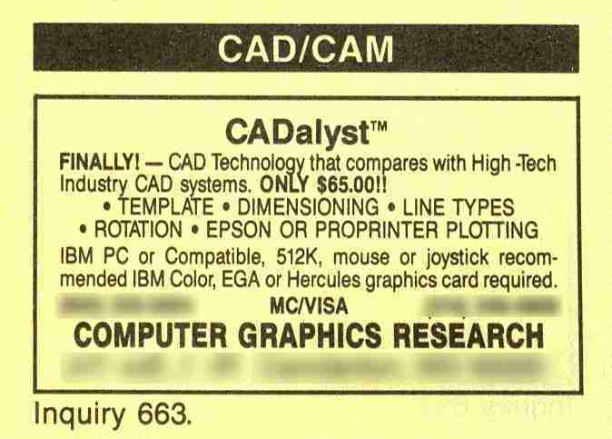 ![]() Photo of Tektronix 4002A courtesy Computer Museum, University of Amsterdam ![]() Advertisement in September 1987 issue of Byte Magazine ![]() CadStd running in DOS ![]() CadStd running in Microsoft Windows XP |